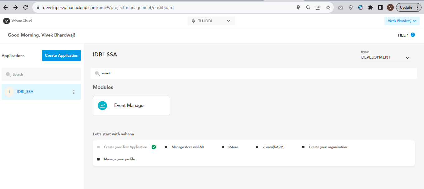 * Click on the application and search Event Manager resource and click on it