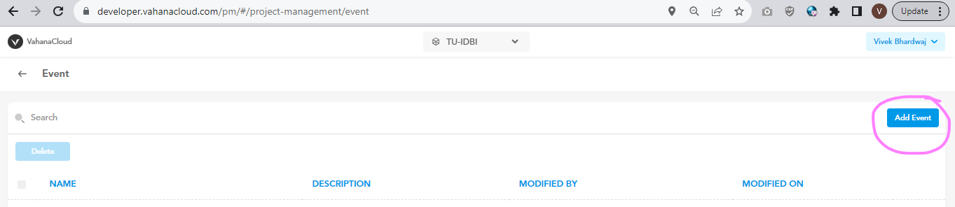 Click on **Add Event** to add event with the configured details.