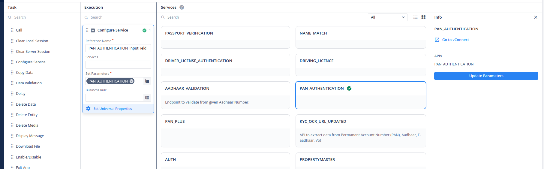 - Utilize the Configure Service task, accessing the API service created.