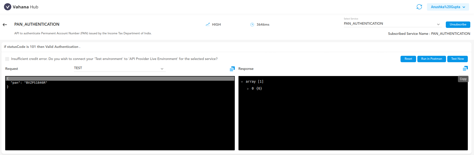 - Optionally, test the API within Vahana Hub.
