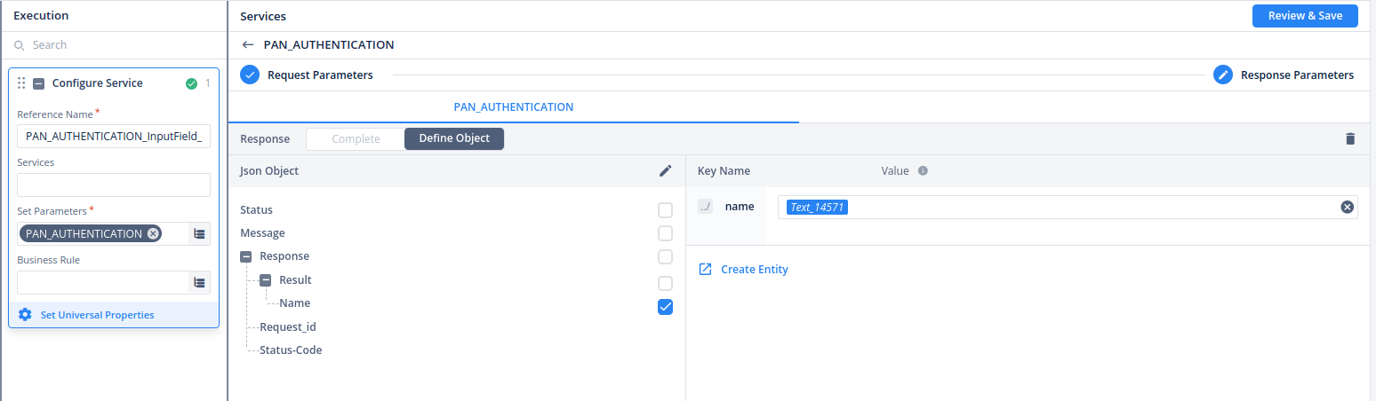 - Specify the desired response structure and destination element for response parameters.