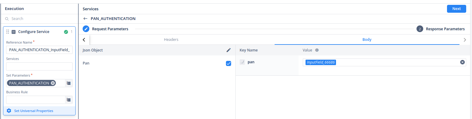 - Provide the required format for the service input and specify the element from which the input should be fetched.