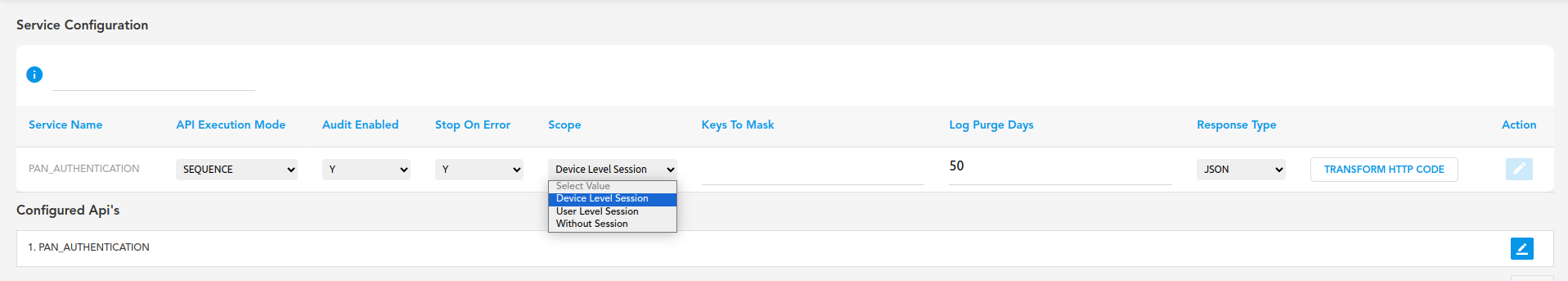 - Important Note: Change the scope of the service created in VConnect to DEVICE LEVEL SESSION.