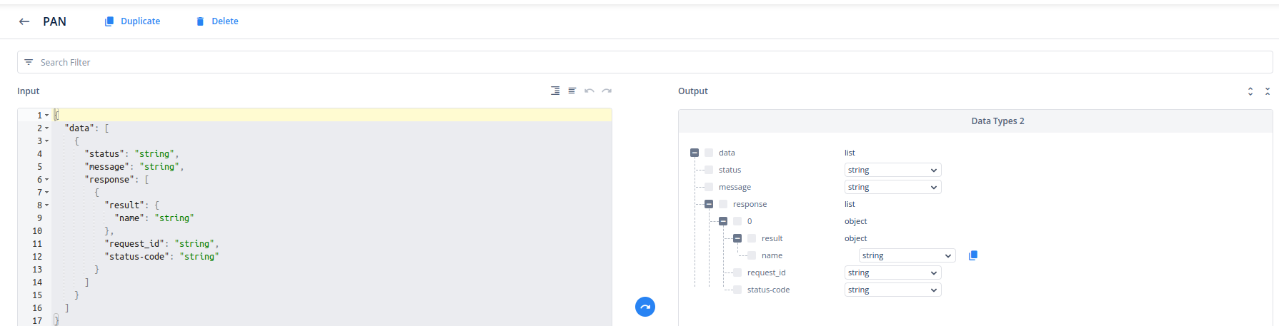 - In the Response Parameters section, specify the desired response from the API data and select the element for your output.