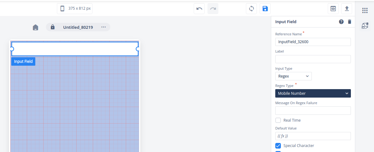 - Select the input field and set its input type to “REGEX”.