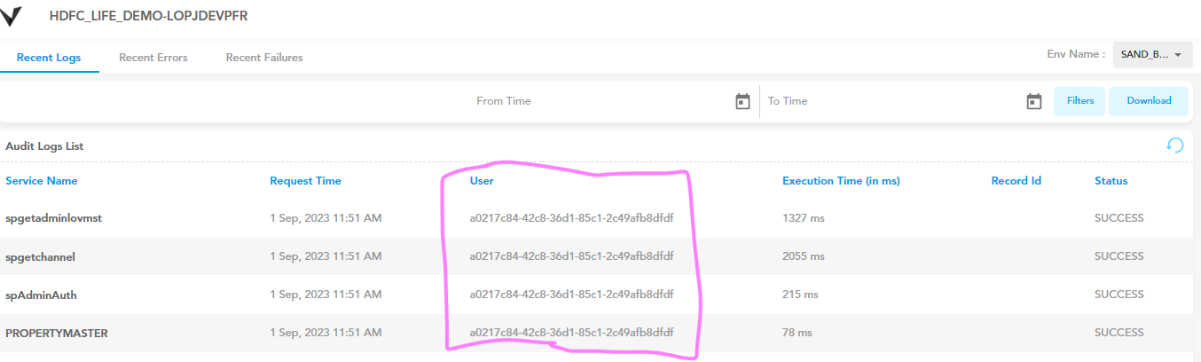 We have a custom web portal (Angular) using vConnect for request response where login is working fine, however the login ID printed in the logs shows an encrypted text.