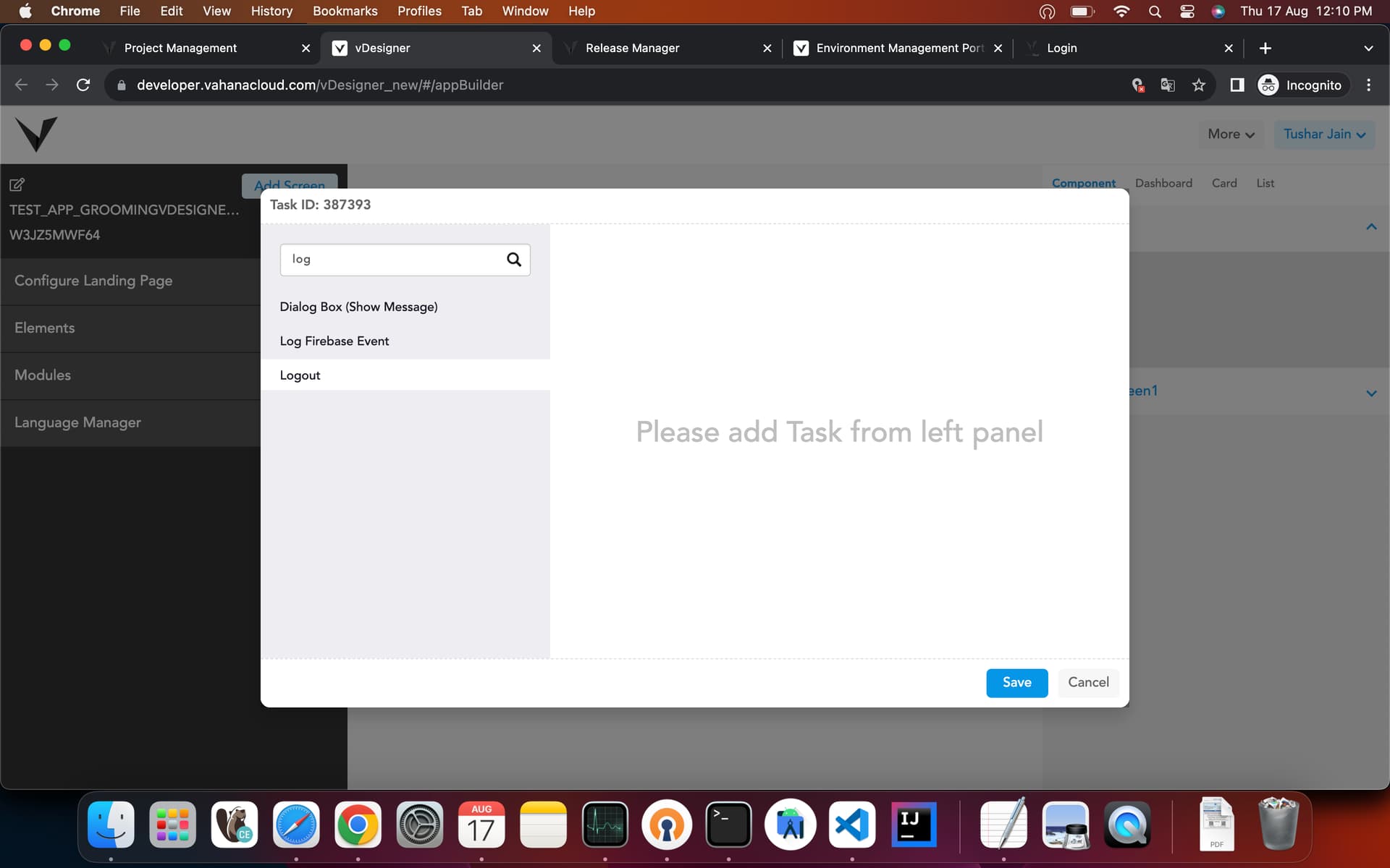 There is one specific task for Logout, by using this task system will by default call logout to server. Check screenshot for more details
